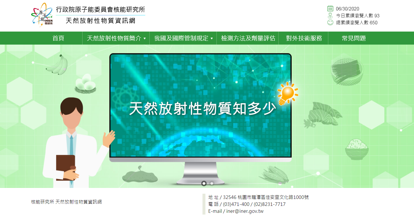 原能會核研所建置天然放射性物質資訊網,其中整合天然放射性物質管理、民生應用與對外技術服務檢測等訊息,以增進社會大眾對天然放射性物質之認識。