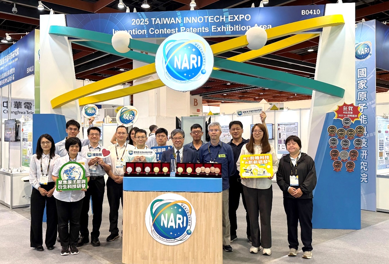 2025台灣創新技術博覽會盛大登場,本院以橫跨核安與核後端、輻射民生應用、新能源與系統整合等多項最新研發成果參展,全面展現原子能科技在永續發展、健康照護與智慧生活上的多元應用與創新潛力。本次參展成果斐然,勇奪1鉑金、4金、3銀、5銅等共13項獎項。