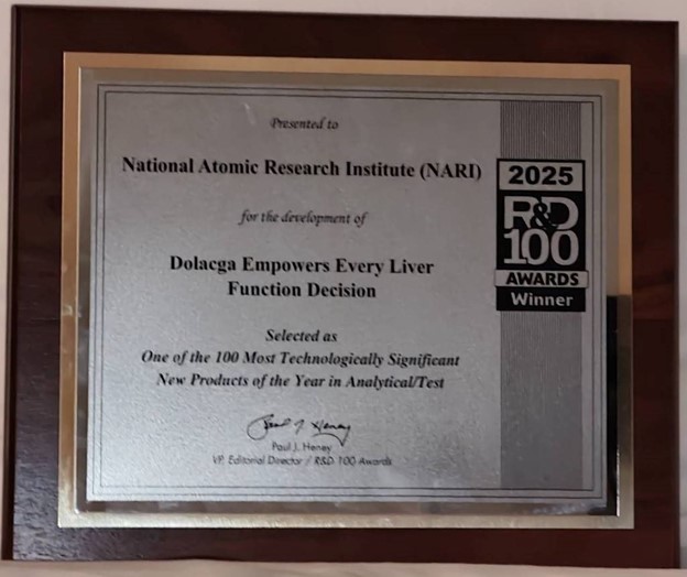 素有「創新界奧斯卡」之稱的全球百大科技研發獎(R&D 100 Awards),於美國時間 11 月 20 日舉行2025年評選結果頒獎典禮。該獎項由 WTWH Media LLC 媒體營銷平台主辦,旨在評選和表彰前一年推向市場的 100 項最具技術意義的產品、技術和材料。2025 年是此獎項的第 63 屆,本屆獲獎者來自全球 13 個不同的國家和地區,並由 54 位資深專業人士擔任獨立評委,競爭激烈。其中,國原院憑藉其獨步全球的 「多蕾克鎵肝功能造影劑」 核醫藥物研發技術,脫穎而出榮獲大獎,也為全球首次以核醫藥物入選並獲得R&D100 Awards獎項。這項核醫藥物技術的突破性,證明了國原院在放射性藥物研發上的卓越能力,不僅為肝臟相關疾病的診斷提供了傳統影像技術難以獲得的肝功能定量資訊,更將台灣的核醫技術推向了世界級的領先地位。