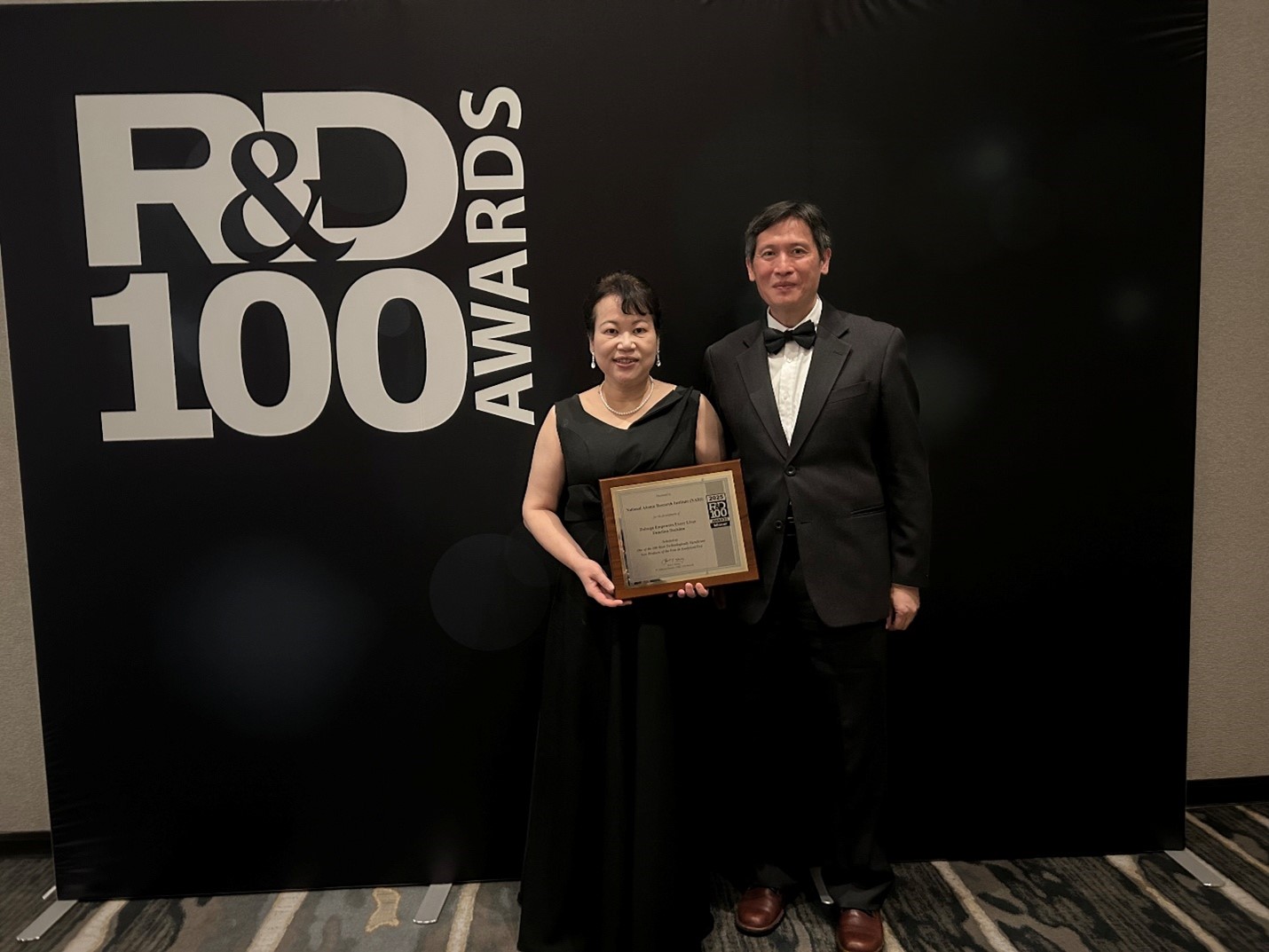 國原院同位素應用研究所李振弘所長(右)與王美惠博士(左)參加2025全球百大科技研發獎頒獎典禮