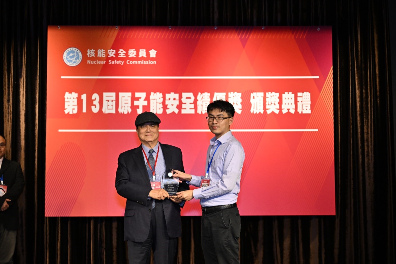 個人組方面,工程所黃志中副研究員榮獲核能安全類個人獎,黃副研究員長期參與國內首座百萬瓦級台灣研究用反應器(Taiwan Research Reactor, TRR)除役計畫,研發稀缺的水下切割機具與工法,成功應用於高輻射組件拆解,其創新成果除獲得多項專利及國際論文發表外,更多次於國際會議分享實務經驗,對於建立國內除役技術自主能力及確保廢棄物管理安全貢獻卓著。輻防所楊子毅副研究員榮獲民生應用類個人獎,楊副研究員致力建立國內唯一飛航劑量評估技術,受歐盟輻射劑量組織邀請參加國際比對(國內首次),評估程式獲核安會採用,並帶領團隊維護實驗室TAF認證,展現專業度及公信力,以及發展海洋輻射擴散模式,強化災防預警。